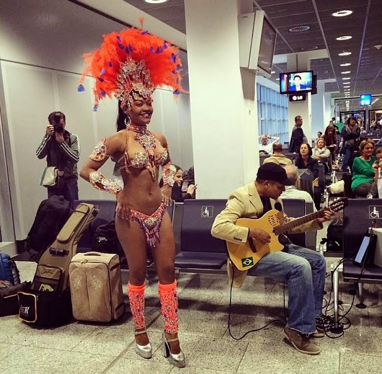 As comemorações em torno da Copa do Mundo FIFA Brasil 2014 já começaram. Ontem no voo LH500 da companhia Lufthansa, de bandeira alemã, na ligação de Munique para o Rio de Janeiro, a festa já começou antes mesmo do embarque, com mulatas e música brasileira. No voo, em um Boeing 747, mais de 350 caipirinhas forma servidas aos passageiros. Os europeus já estão chegando ao Brasil. Veja algumas imagens.